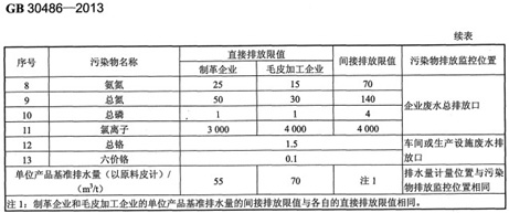 ¡¶ÖƸPƤë¼Ó¹¤¹¤ÒµË®ÎÛȾÎïÅŷűê×¼¡·£¨GB30486-2013)ÖÐÃ÷È·»®¶¨ÁË£¬ÖƸPëƤ¼Ó¹¤ÆóҵˮÎÛȾÎïÅÅ·ÅÖµ¡¢¼à²âºÍ¼à¿ØÒªÇó£¬ÒÔ¼°±ê×¼µÄʵÑéºÍ¼àÊÓµÈÏà¹Ø»®¶¨£¬ÆäÖÐ2014Äê3ÔÂ1ÈÕºóн¨ÆóÒµÆäÎÛË®ÖÐ×ܸõµÄÅŷűê׼Ϊ1.5mg/L£¬Áù¼Û¸õµÄÅŷűê׼Ϊ0.1mg/L£¬ÆäÅÅ·Å¼à¿ØÎ»ÖÃΪ³µ¼ä»òÉú²úÉèÊ©·ÏË®Åŷſڣ»2014Äê3ÔÂ1ÈÕǰÒÑÓÐÆóÒµÆäÎÛË®ÖÐ×ܸõµÄÅŷűê׼Ϊ1.5mg/L£¬Áù¼Û¸õµÄÅŷűê׼Ϊ0.2mg/L£¬ÆäÅÅ·Å¼à¿ØÎ»ÖÃΪ³µ¼ä»òÉú²úÉèÊ©·ÏË®Åŷſڣ»2016Äê1ÔÂ1ÈÕºó£¬ËùÓÐÆóÒµ¾ù°´Ð½¨ÆóÒµ±ê×¼Ö´ÐС£