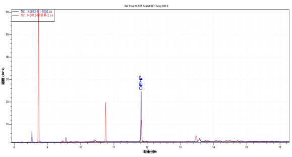 ÑùÆ·TICͼ£¨À¶É«£©ÓëÁÚ±½»ì±êTICͼ£¨ºìÉ«£©