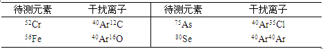 ÏÖÔÚËļ«¸Ëµç¸ÐñîºÏµÈÀë×ÓÌåÖÊÆ×ÒǶà½ÓÄÉë²ÆøµÈÀë×ÓÆø£¬Ôòë²Ô×ÓÓë»ùÌåÀë×ÓÍŽáÐγɶàÔ×ÓÀë×Ó£¬¿´´ý²âÔªËØÍ¬Î»ËØÔì³É×ÌÈÅ£¬Ïêϸ×ÌÈżû±í3¡£ÉèÖÃ10¦Ìg¡¤L-1µÄCr£¨3%HAc½éÖÊ£©¡¢Fe£¨1%HNO3½éÖÊ£©¡¢As£¨4%HCl½éÖÊ£©¡¢Se£¨1%HNO3½éÖÊ£©±ê×¼ÈÜÒº£¬»®·ÖÔÚ±ê׼ģʽ¼°Åöײ·´Ó¦Ä£Ê½Ï²ⶨÆäÍ¬Î»ËØÏìÓ¦Ðźţ¨Í¼2£©£¬ÊµÑéЧ¹ûͬʱÏÔʾ56FeÓë57FeÏìӦǿ¶È¿¿½üFeÍ¬Î»ËØÆ·Ã²±È£¬52CrÓë53CrÏìӦǿ¶È¿¿½üCrÍ¬Î»ËØÆ·Ã²±È£¨57As¼°80SeÎÞºÏÊʲο¼Í¬Î»ËØ£©£¬ ÓÉÉÏÊö¿ÉÖª£¬ICP-MS 2000E½ÓÄÉHe/H2×÷ΪÅöײ·´Ó¦ÆøÌ壬ÄÜÓÐÓÃÈ¥³ýë²»ùÏà¹Ø¶àÔ×ÓÀë×Ó×ÌÈÅ¡£