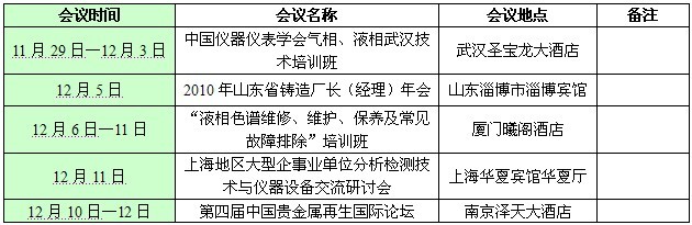 伟德国际1946官方网仪器2010年12月份展会、聚会预告