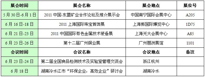 2011Äê6Ô·ÝÕ¹»á¡¢¾Û»áÔ¤¸æ
