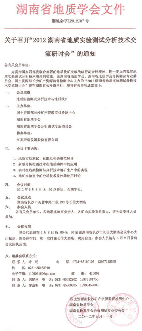 ¡°2012ºþÄÏÊ¡µØÖÊʵÑé²âÊÔÆÊÎöÊÖÒÕ½»Á÷×êÑлᡱ¼´½«ÕÙ¿ª