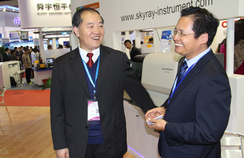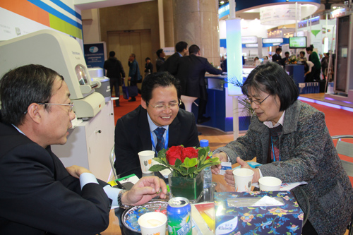 ÖйúÒÇÆ÷ÒDZíѧ»áÑàÔó³Ì¸±ÃØÊ鳤£¨ÓÒÒ»£©¡¢ÖйúÆÊÎö²âÊÔлáÍõ˳²ý¸±Àíʳ¤£¨ÓÒ¶þ£©ÔÚΰµÂ¹ú¼Ê1946¹Ù·½ÍøÕ¹Ì¨Ó븱×Ü˾Àí¼æÓªÏú×ܼàÀîÔÆ¼Ã²©Ê¿½»Á÷£¨×óÒ»£©