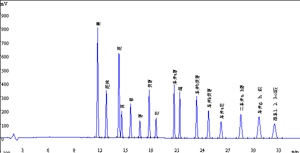 16ÖÖ¶à»··¼ÏãÌþ±ê׼ƷҺÏàÉ«Æ×ͼÈçÏ£º