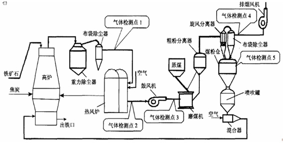 ƾ֤¸ÖÌúÒ±½ðµÄÀú³ÌÒÔ¼°ÏÖʵ¼à²âÐèÒª£¬Çå¾²Éú²ú¼à²âϵͳ½¨ÉèÓÉ3¸ö²¿·Ö×é³É£¬»®·ÖÎª×ªÂ¯ÃºÆø¼à²â¡¢¸ßÂ¯ÃºÆø¼à²âºÍ½¹Â¯ÃºÆø¼à²â¡£