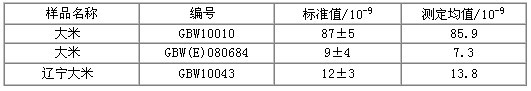 Ñ¡ÓÃÈýÖÖ¹ú¼Ò±ê×¼´óÃ×ÑùÆ·¾ÙÐÐÑùÆ·Ïû½â¼°ÑùÆ·²âÊÔ£¬²âÊÔЧ¹ûÈç±í1Ëùʾ£º