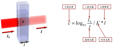 ¹â¶È±ÈÉ«·¨Ö÷ÒªÊÇÆ¾Ö¤Àʲ®±È¶û¶¨ÂÉ£¬Ò»Êøµ¥É«¹âÕÕÉäÓÚÒ»ÎüÊÕ½éÖÊÍâò£¬ÔÚͨ¹ýÒ»¶¨ºñ¶ÈµÄ½éÖʺó£¬ÓÉÓÚ½éÖÊÎüÊÕÁËÒ»²¿·Ö¹âÄÜ£¬Í¸Éä¹âµÄÇ¿¶È¾ÍÒªÏ÷Èõ¡£ÎüÊÕ½éÖʵÄŨ¶ÈÓú´ó£¬½éÖʵĺñ¶ÈÓú´ó£¬Ôò¹âÇ¿¶ÈµÄÏ÷ÈõÓúÏÔÖø¡£